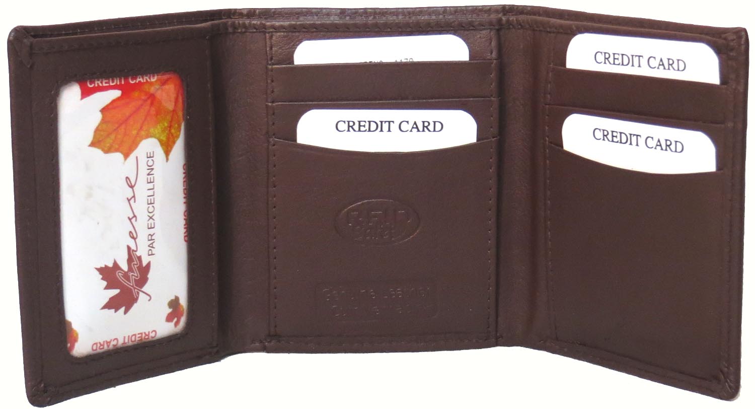 Genuine Leather Cowhide RFID Trifold Wallet