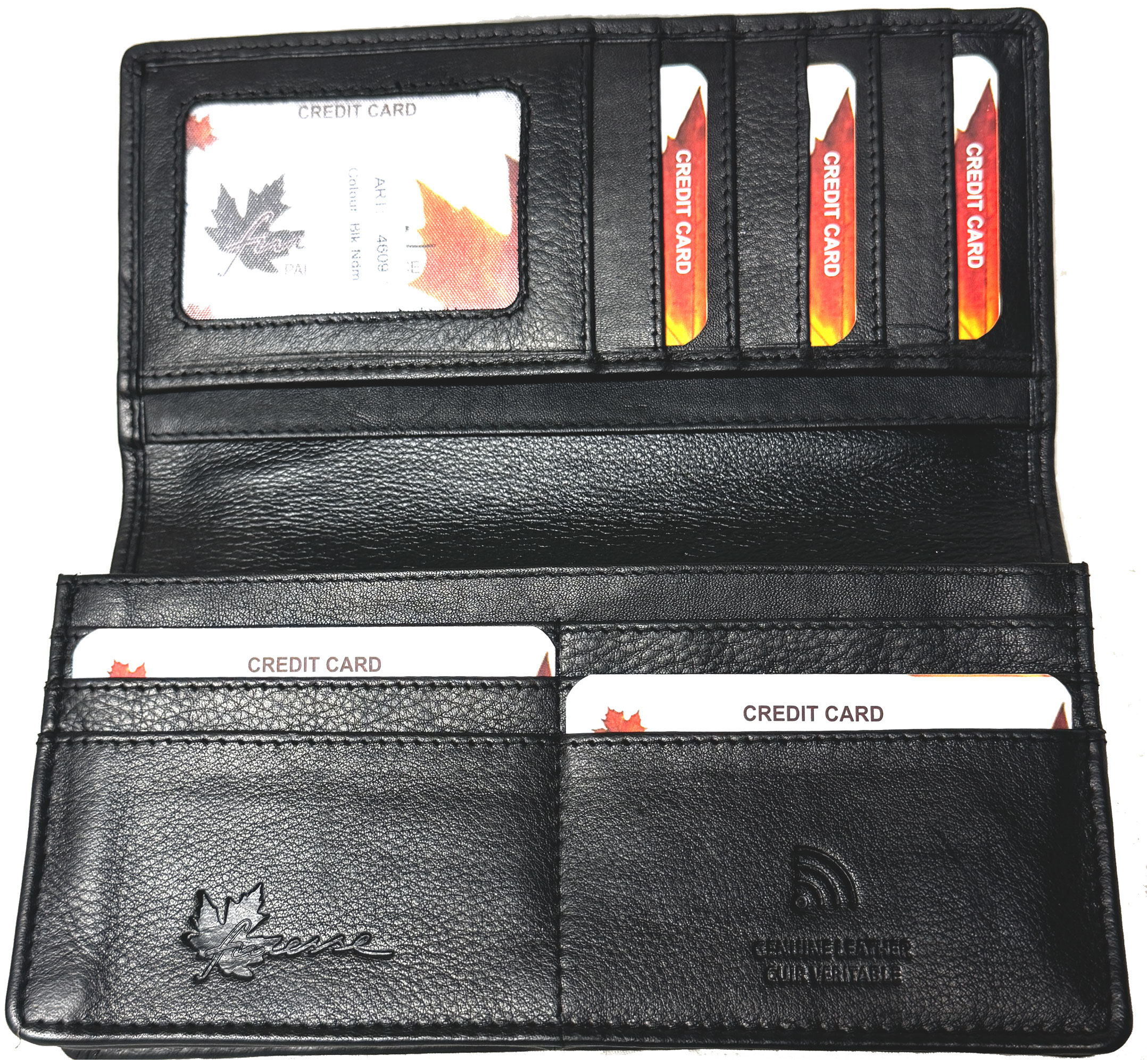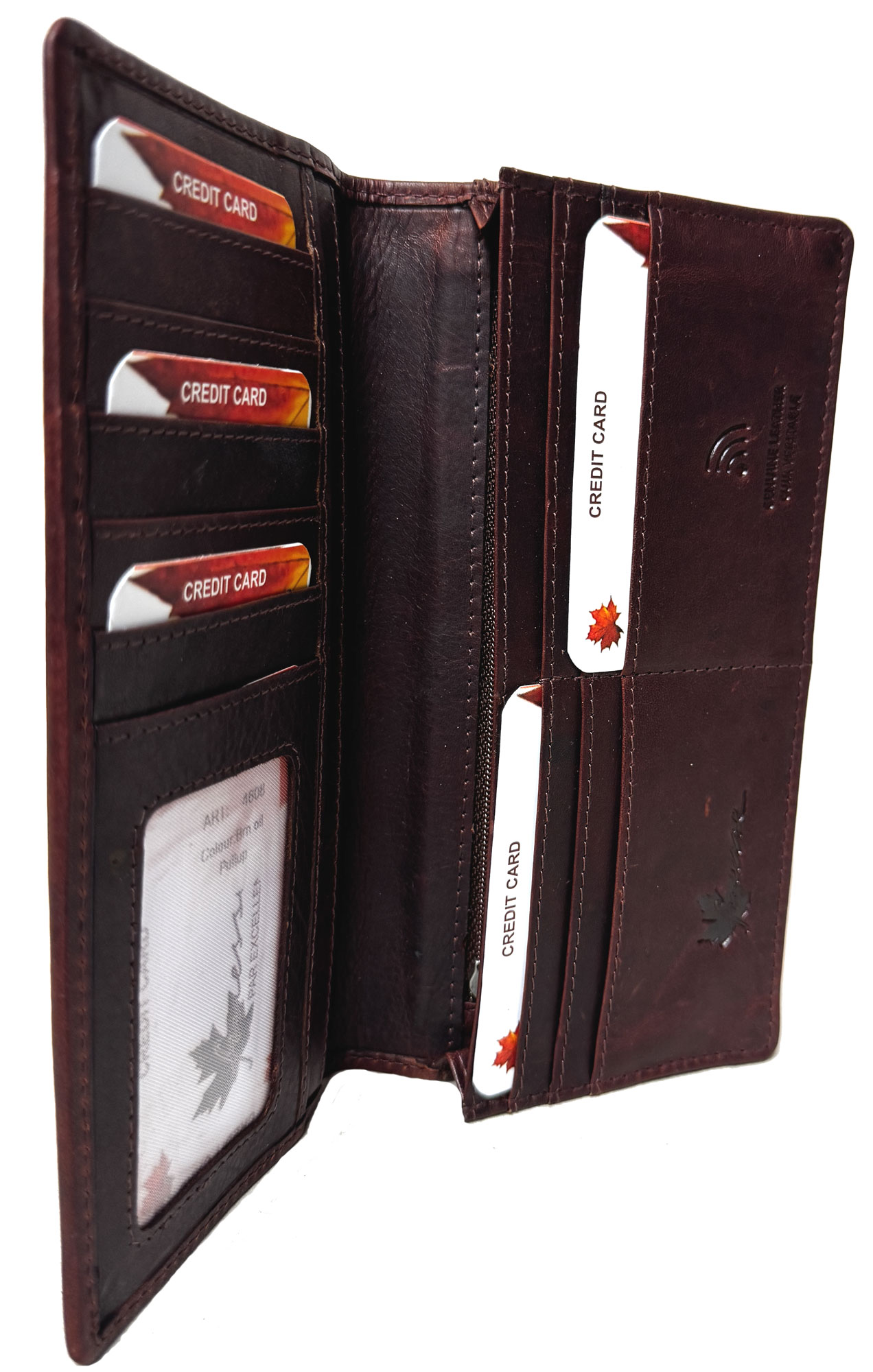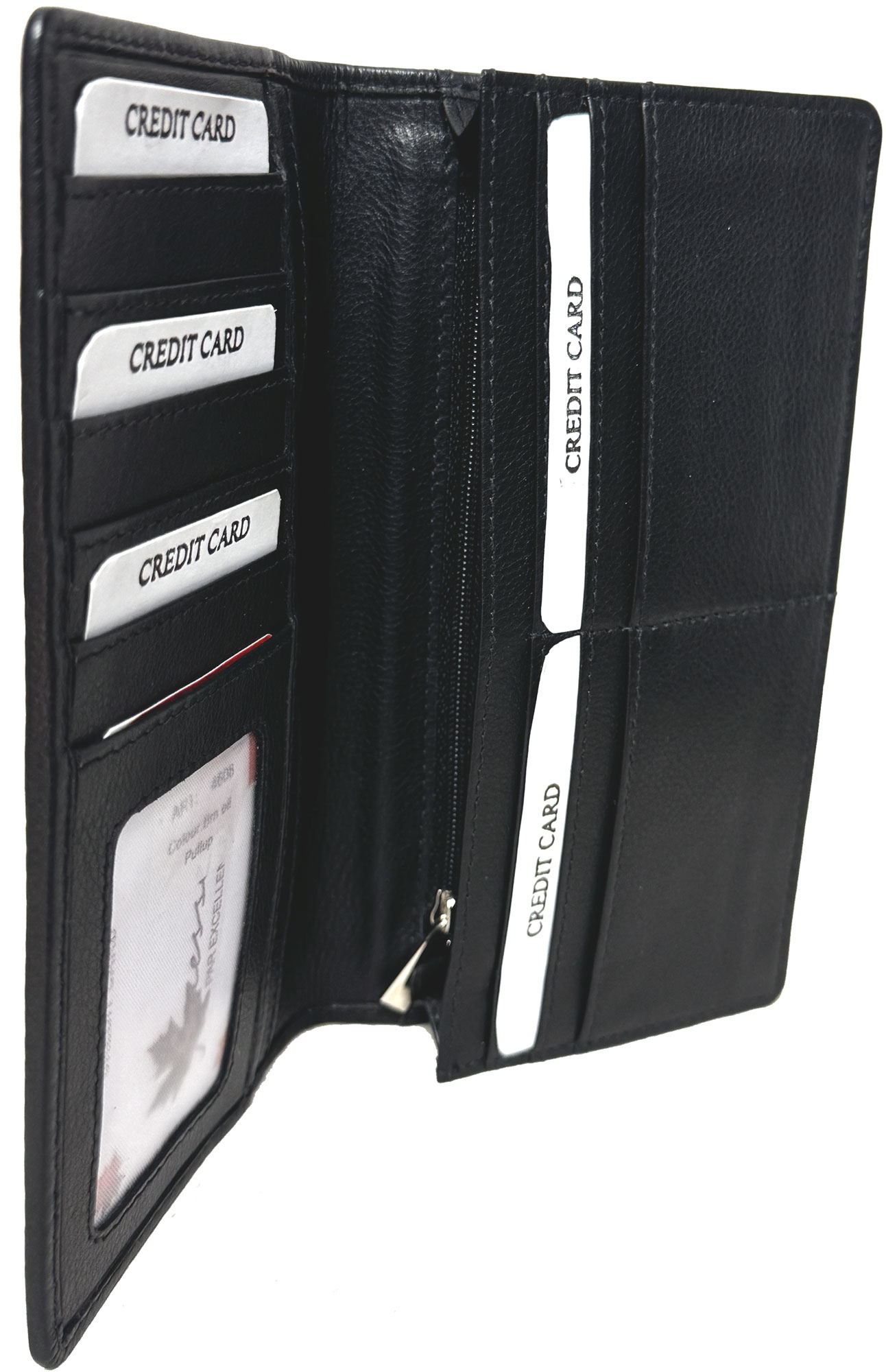 • - 1 Large Bills Sections behind card section (Zippered Pocket behind Bills Section )